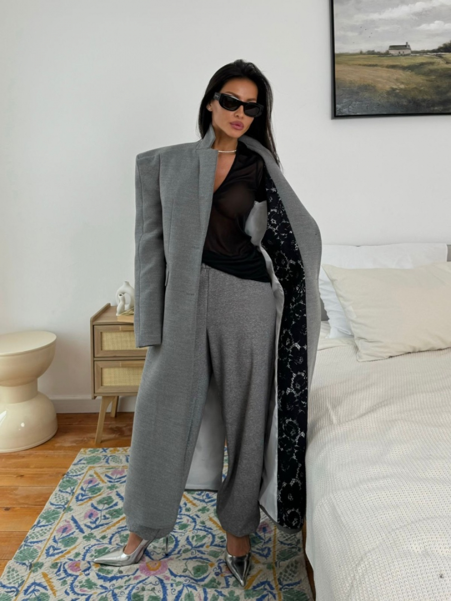 Спереди имеются карманы с отрезным бочком, на заднем полотнище брюк имеется клапан с пуговицей.