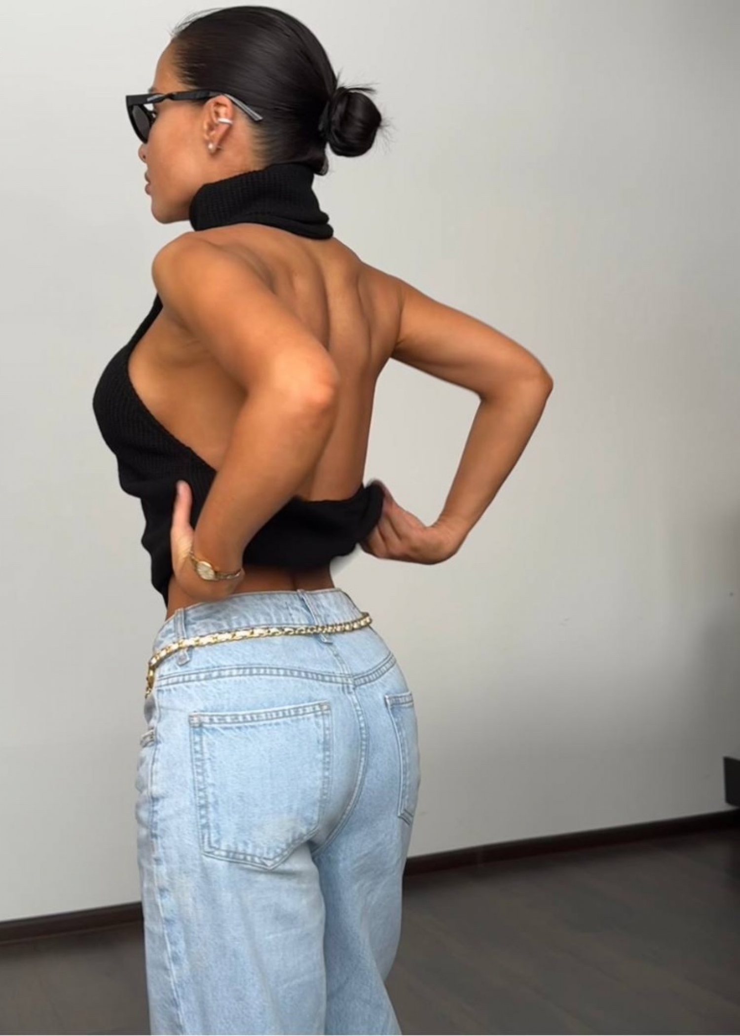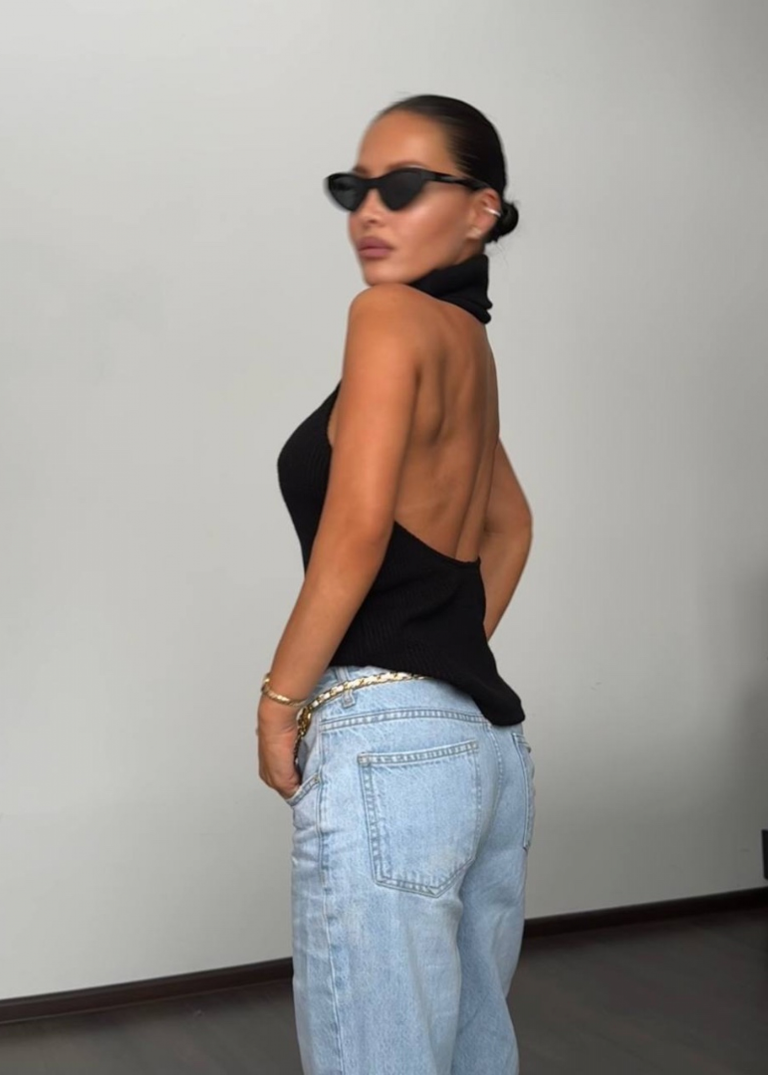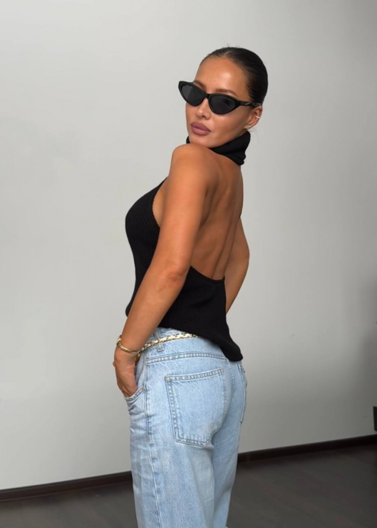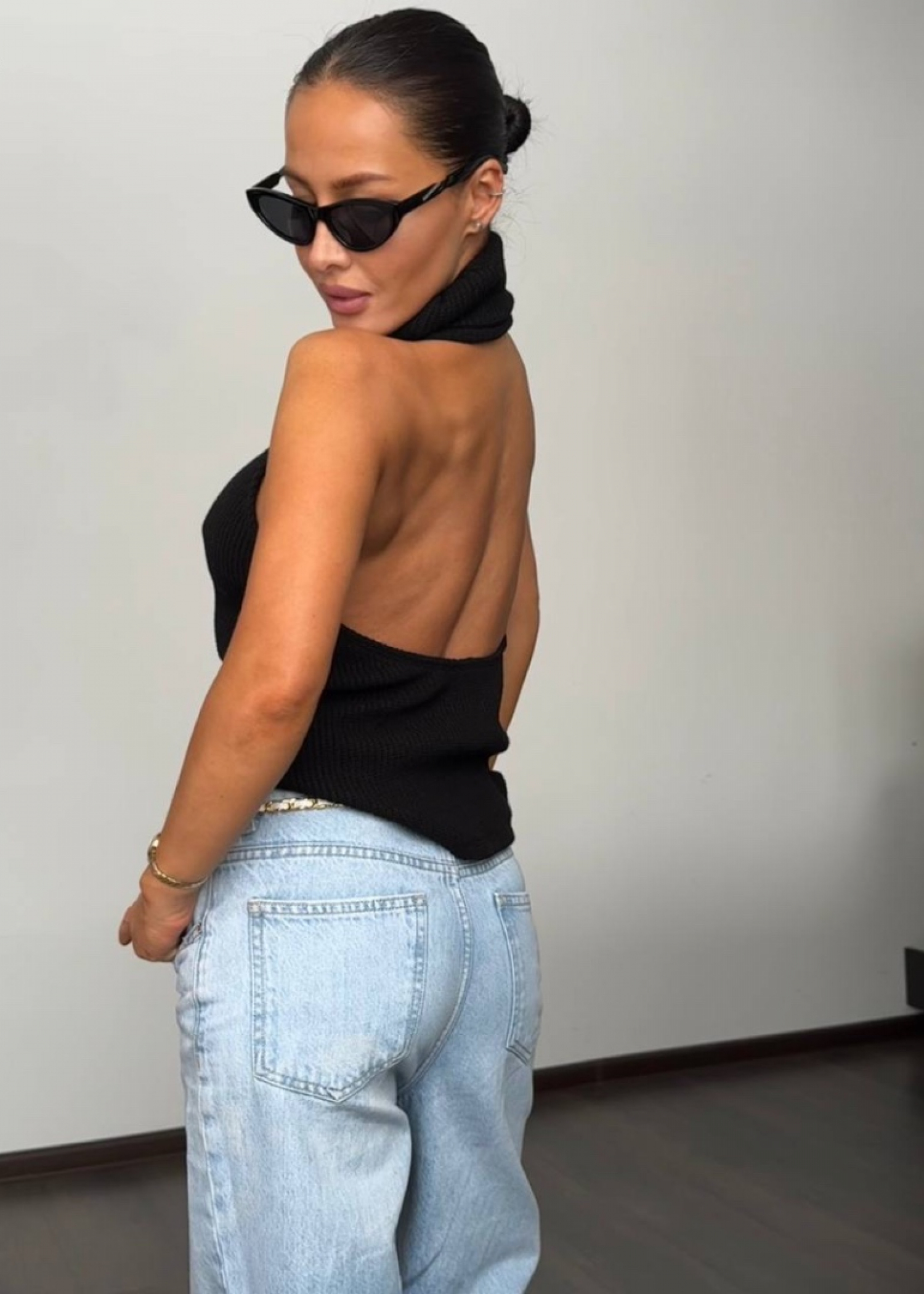 топ с открытой спиной из трикотажа крупной вязки